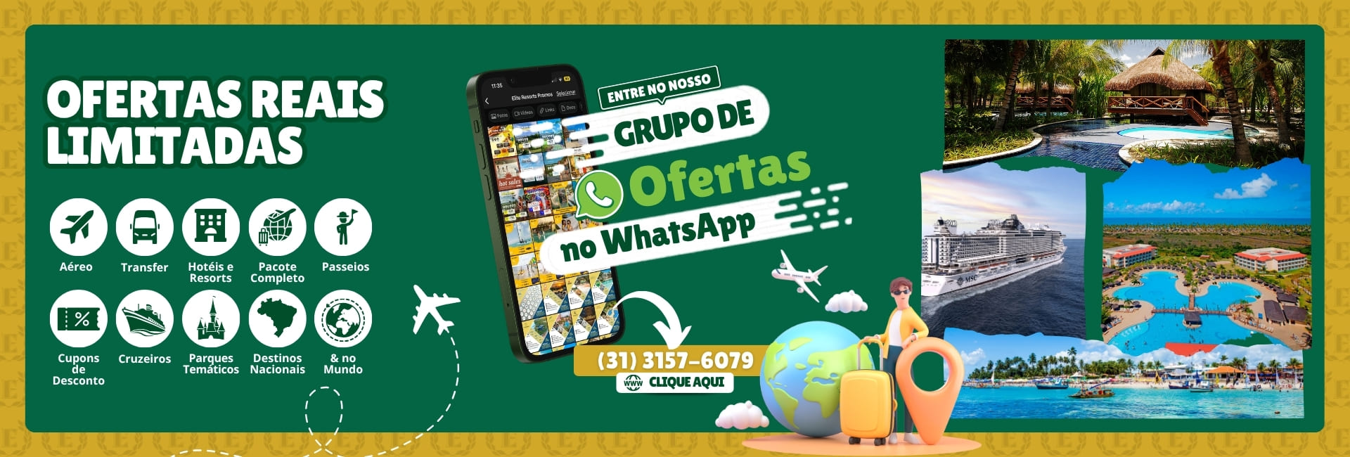Reunimos informações sobre a estrutura, acomodações e localização dos principais resorts, assim como detalhes sobre a gastronomia e regime de alimentação, pois entre as opções estão resorts all inclusive, com pensão completa ou meia pensão. Aproveite para esclarecer todas as suas dúvidas e solicitar a sua cotação através dos nossos canais de atendimento.